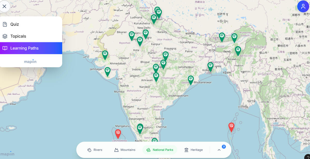 2- Dedicated learning path to cover each topic, like National Parks, Rivers, etc